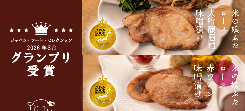 第97回ジャパン・フード・セレクションにて大商金山牧場の「米の娘ぶたロース大吟醸酒粕味噌漬け」「米の娘ぶたロース赤ワイン味噌漬け」がグランプリを受賞いたしました!