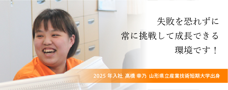 はじめは覚えることが多く、目の前の業務で精いっぱいですが、周りには助けてくれたり相談に乗ったりしてくれる暖かい先輩ばかりです。私もそうですが、失敗を恐れずに常に挑戦して成長できる環境です。