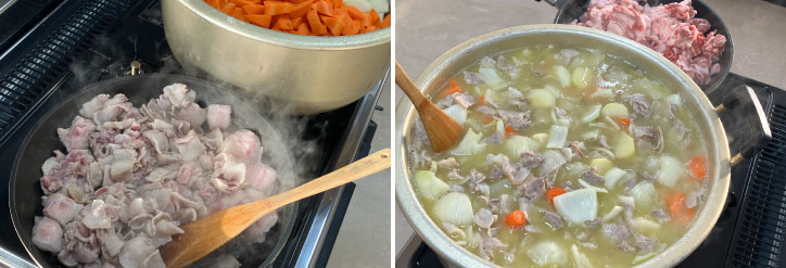 寄付したお肉はカレーや芋煮などの料理に使用され、来場された方々に無償で提供されています。また、2022年より資本業務提携を行っているスターゼン株式会社より毎月冷凍商品が寄付され、庄内ちいき食堂へ来ていただいた方へのお土産として提供しています。